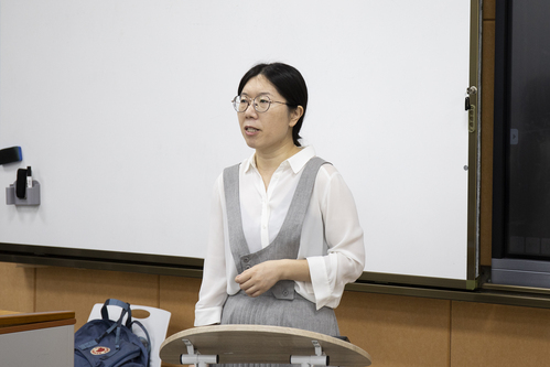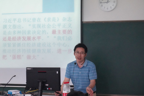 袁海平用巴塘扶贫项目短片《扶贫者的步伐》引入主题内容,向同学们讲解了习近平总书记关于共同富裕的重要论述。她认为,共同富裕从“浙”走起是因为浙江具备开展示范区建设的基础、优势和代表性。同时袁海平重点介绍了习近平总书记在“八八战略”重大部署中强调的“浙里有爱,山海有情”以及“山海协作”计划,袁海平指出这也是绍兴新时代的“山海经”。