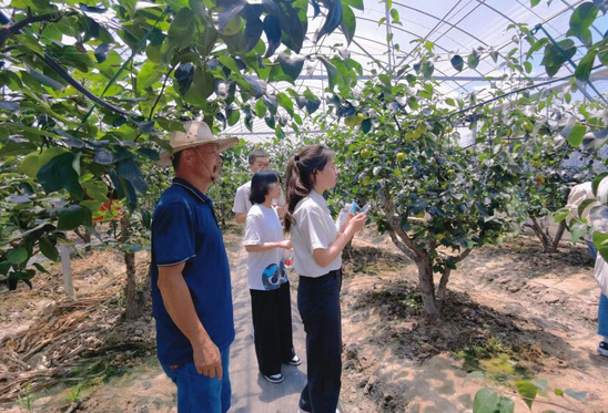 在详细的介绍后,社区主任王主任带着社会实践团队的成员体验了摘梨的过程,并对同学们提出的如何梨的好坏,有哪些采摘的要点进行了详细解答。之后同学们将理论运用到实践中去,自己动手帮助果农采摘果梨,由于室外高温,棚内温度达到了四十多度,棚内更显得闷热无比。在一番付出和实践后,实践小组顺利完成了本次暑期社会实践活动。
