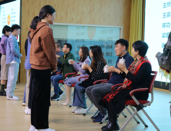教务处副处长刘芳宣读了第十期青年教师助讲培养结对名单,共有20位青年教师与19位教学科研经验丰富的导师成功结对。葛金玲副校长、戚宏波处长、刘芳副处长、费群蝶主任等领导为导师们颁发了聘书。随后,青年教师怀着激动的心情向导师双手奉茶行拜师礼,导师们幸福地品味香茗,接受徒弟的真心问候和深深敬意。西方语言学院严羽安老师、东方语言学院王忻教授和东部理工数据科学与传播学院王满英副院长分别代表青年教师、导师和教学单位做了表态发言。