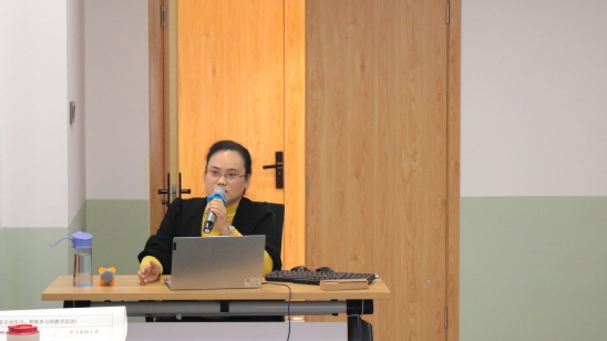 随后,张悦老师以“英语老师课堂上唱生僻字教学”的“网红”视频,引出了“什么是真正的参与式课堂”这一发人深省的问题,并以罗翔老师的教学视频为例,指出参与式课堂包括师师互动、师生互动、生生互动,总结出参与式学习应始终以学生为中心,由各类优质问题驱动,实现多元互动平衡。她建议在设计后测时要充分考虑到是否能够真实反馈学生的学习成果,同时也要能为不同类型的教学目标精心设计不同形式的测试。她指出,好的小结是在内容回顾及复盘的同时对学生上课后的表现及时进行反馈,有力推动学生进一步思考并激励学生抒发对未来的展望。